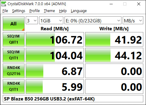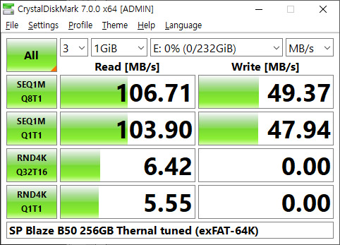 Comment: SP Blaze B50 256GB Thernal tuned (exFAT-64K)