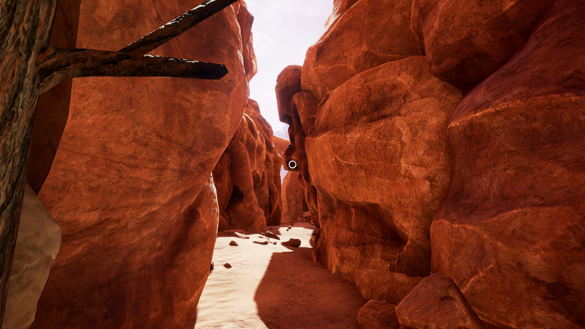 동굴 밖은 갑자기 사막 같은 곳으로 바뀌어 있고, 이게 원래 시작된 위치에서도 이렇게 숲처럼 보이는 곳을 벗어 나면 이런 돌 사이에 모래가 펼쳐진 곳이지는 않을 것이며, 이것은 곳 여기가 뭔가 아주 다른 곳이라는 것을 보여 주는 시작이 아닐까 합니다.