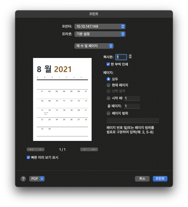 MacOS 에서 네트워크 프린터 설정