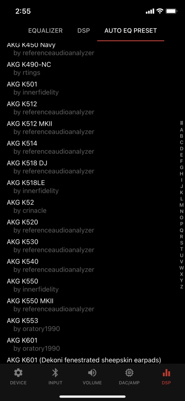 다만 너무나 자세한 DSP/EQ의 조정은 제가 볼 때 도를 넘은 수준까지 지원하는 수준이었는데, 다음 몇 장의 캡처 이미지를 보면 그 이유를 알 만도 합니다. 사용자들이 튜닝해 공유하는 각 헤드폰 제조사의 각 모델들까지 Auto EQ라는 것을 통해 지원하는데 개인적으론 그리 어울리는 소리로 들리진 않아 기본으로만 쓰긴 했습니다만 온갖 기능이 다 지원되고 있었습니다. 사람에 따라 다양한 취향을 모두 만족시켜 주겠다는 큐델릭스의 야심이 보이는 부분이기도 하고, 완성도가 쓰레기급으로 가고 있는 Rad**ne 사 제품과도 차이가 나는 부분이 아닌가 합니다. Rad**one 은 하드웨어나 소프트웨어나 둘 다 끔찍한 사후관리를 보여줘서 큐델릭스와 비교하니 특히나 더 크게 느껴지는 것들이 많았습니다.