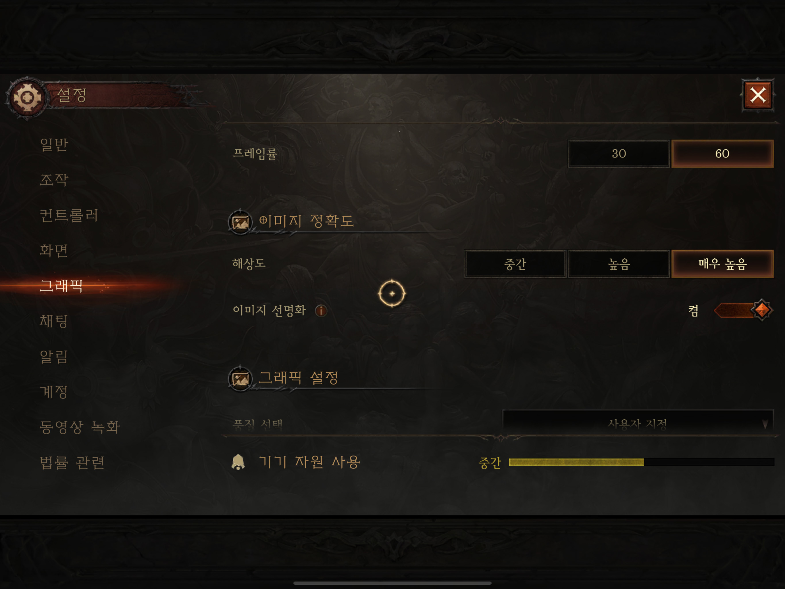 일단 PC 판을 제외한 모든 모바일 디아블로 이모탈은 화면에 렌더링 되는 영상이 실제 해상도의 영상이 아닌 1/4 쯤으로 예상되는 작은 화면에 그려진 렌더링 물을 늘려서 ( 업스케일 ) 출력하는 기이한 동작 방법을 통해서 게임 내 성능을 보장받기 위한 아주 처절한 방법을 사용한 것으로 보입니다.