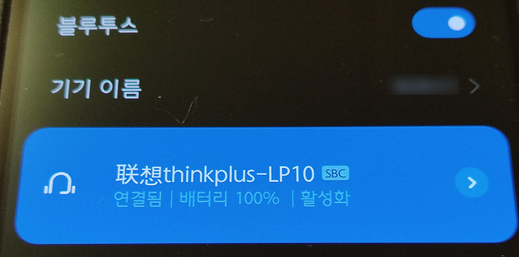 연결 방법은 충전 케이스를 열기만 하면 애플 에어 팟처럼 모두 다 같이 연결 시도가 바로 됩니다. 표시되는 이름은 레노보의 중국 이름이라는 联想(렌상) thinkplus-LP10이라고 표시됩니다. 아이폰은 연결되는 블루투스 기기에 대한 지원 CODEC 종류를 사용자가 따로 알 수 없으므로 연결이 되고 소리가 나오는지만 확인했으며, 결론적으로 잘 들립니다. 볼륨이 안드로이드 기기 대비 좀 더 크게 들리는 것은 제 아이폰 X 가 미국에서 가져온 것이라 국 내 것과 차이가 있는지 확실치는 않지만, 일단 볼륨 자체가 좀 크게 동작하는 느낌입니다.