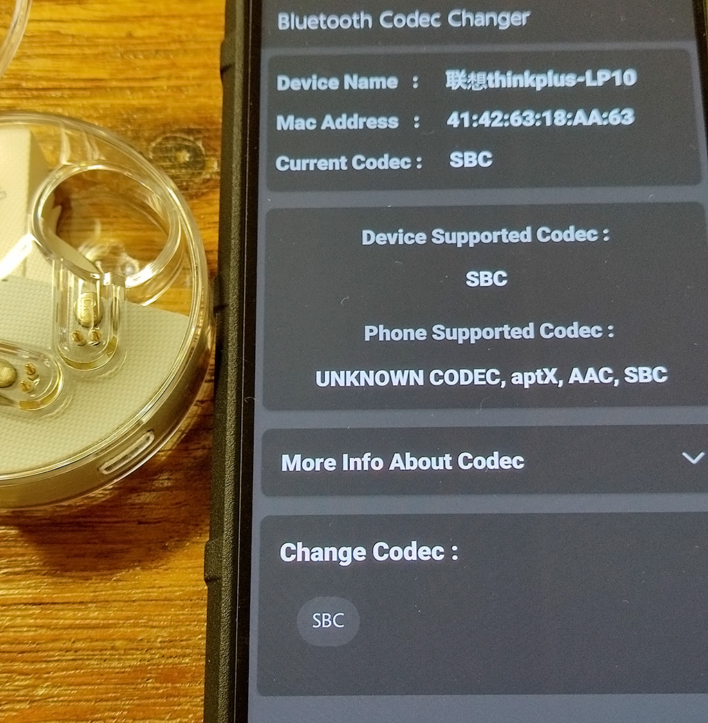 심지어 홍미노트11 은 알 수 없는 CODEC 하나와, aptX, AAC, SBC를 지원한다고 나오는 반면에 실제 연결은 LP10 이 SBC 만 지원한다고 나와서 달리 다른 CODEC을 선택할 방법이 없습니다.