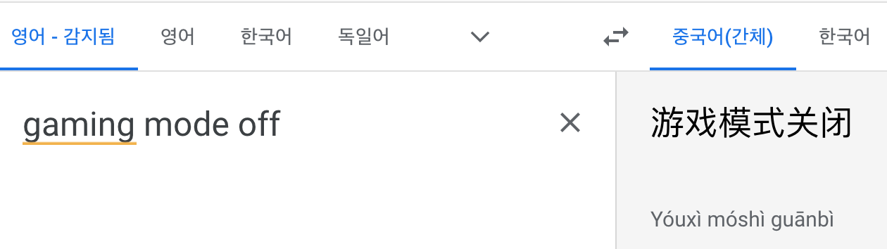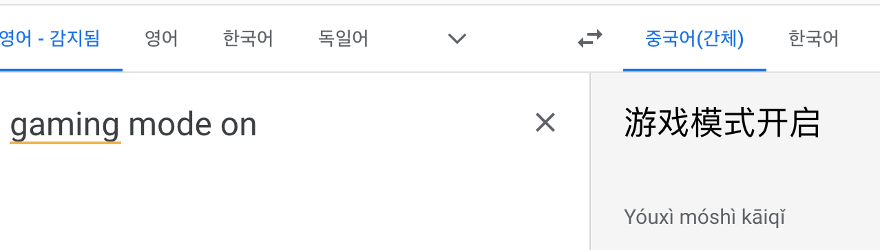 - 요이시 모시 카이퀴 = 게이밍 모드 켜짐
