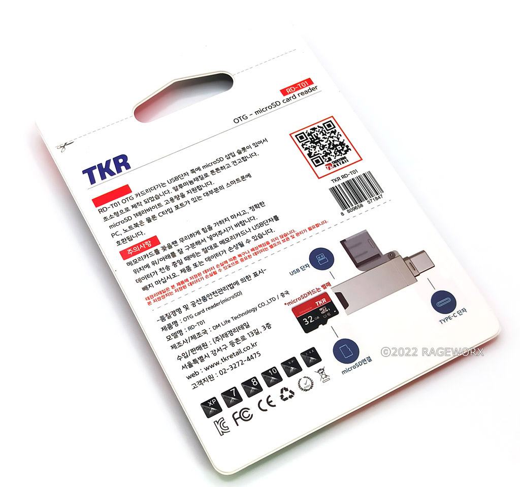 실제로 케이스에 뭔가 적혀 있는 건 많은데, 이 제품이 water proof 일리가 없는 걸 고려하면 그냥 아무 글이나 써 둔 거라 봐야 합니다. 안쪽을 보면 방수를 위한 실링 같은 건 전혀 되어 있지 않기 때문에 이걸 믿고 물에 넣고 그러면 리더기 자체가 바로 유명을 달리하게 되면서 덤으로 microSD 도 같이 갈 수 있기 때문에 '빈 공간에 그냥 아무거나 써 둔 거구나' 정도로 해석하는 것이 나을 듯합니다.