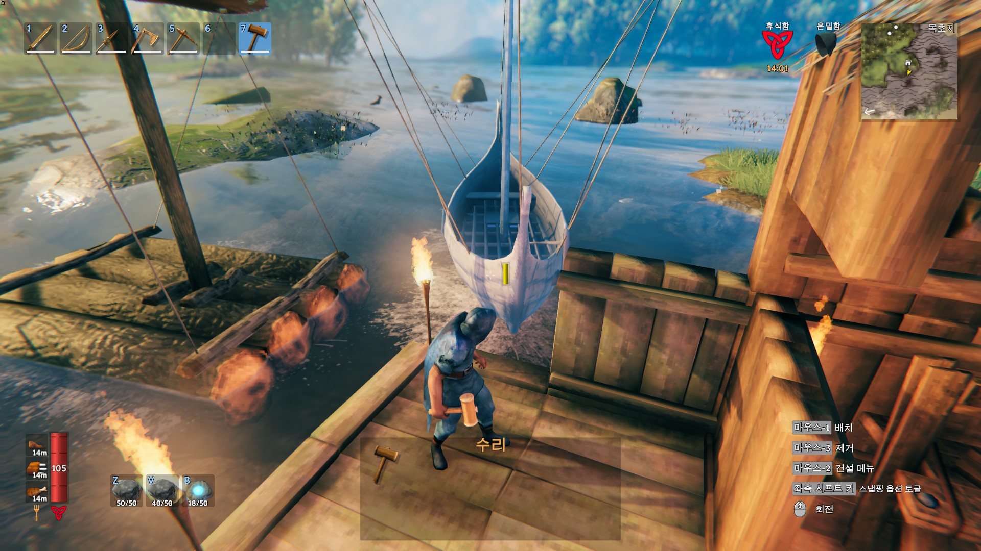 배를 타면 시야가 땅 위를 뛰어다닐 때와 같은 시야 반경을 가지고 있어서 해안가 다가 가야 그나마 지도에 일부가 업데이트되는 졸렬함을 보여 주는 게임이 바로 Valheim 입니다만, 이걸 엄청 크게 만들어 주는 기능입니다. 정말 배 만드는데도 힘들고, 타고 다니는데도 힘든데, 해안가 다가 가면 온갖 몹들이 다 달려 들어서 배 때려 부수는데 아주 환장할 노릇 입니다만, 이런 어려움을 한방에 해결해 줍니다. 배 타고 이동한다? 이 mod는 필수입니다.