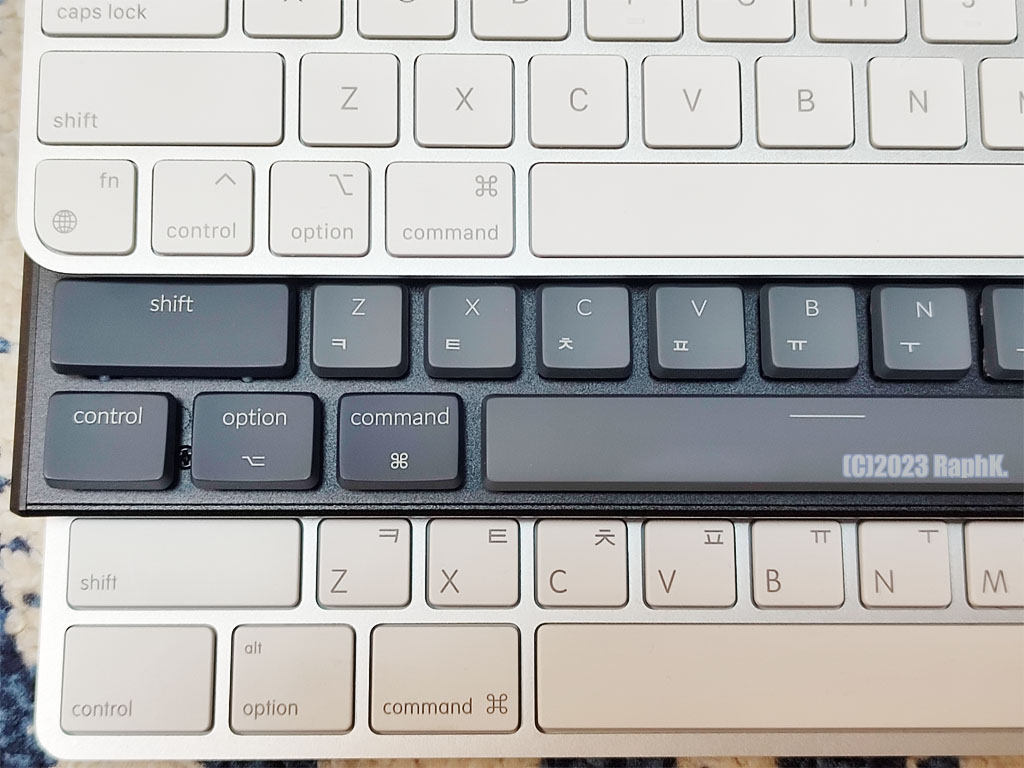 또한 K1을 선택한 이유는 Space saver 형태를 유지하는 보통 키보드 모양을 유지하면서, 스위치가 LP (Low Profile) 임에 손목 받침대가 필요 없는 형태, 단단한 알루미늄 바디 등... 기초적인 기계식 키보드가 갖춰야 할 덕목을 기본으로 가짐에도 불구, 여러 편의성이 추가된 점에 macOS 에 가장 큰 덕목인 Command 키와 X 키의 위치가 좋기 때문입니다.