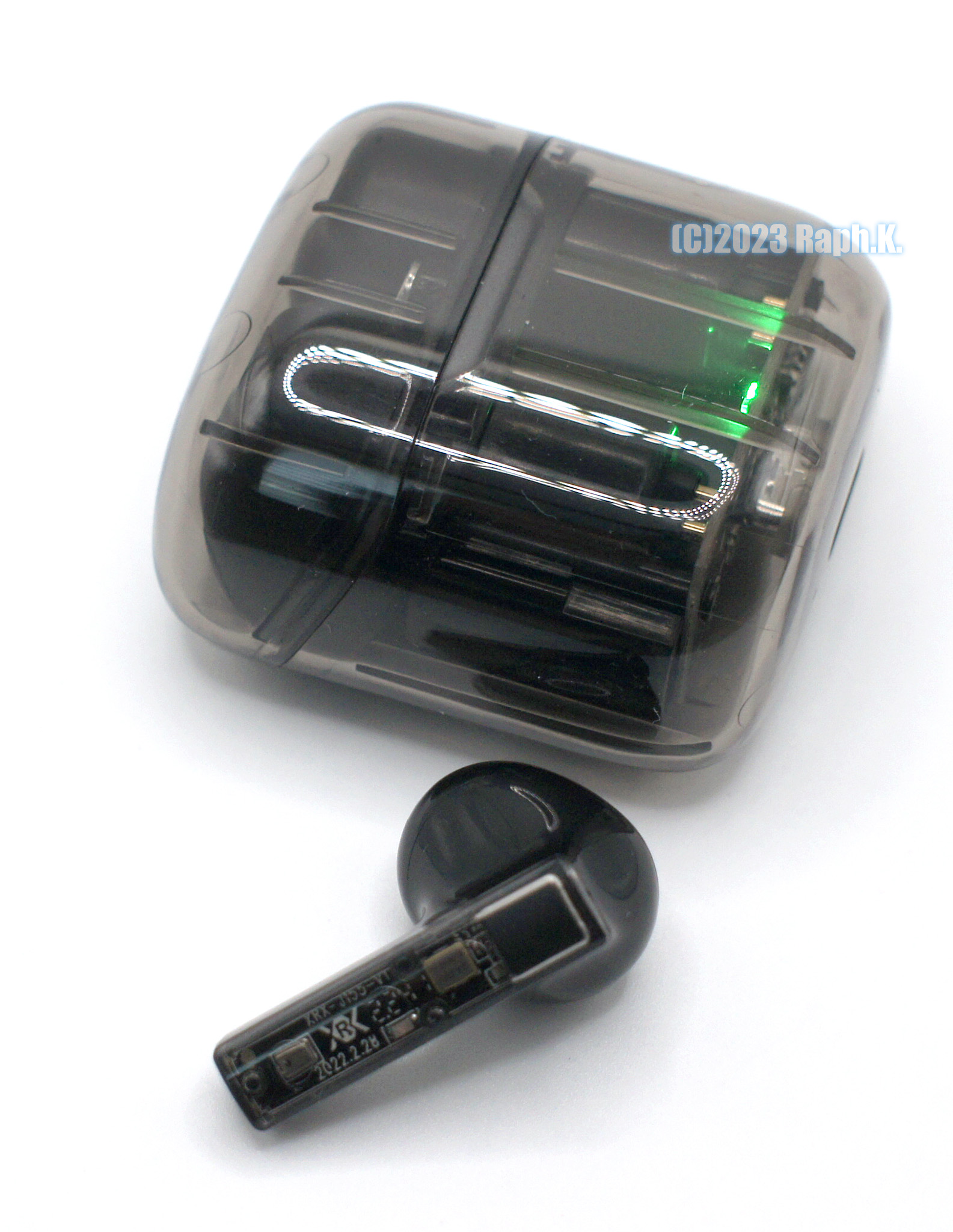 제품은 알리에서 흔히 렌더링으로 보여 주던 모습 그대로입니다, 약간 마름모꼴로 기울어진 구성에, 요즘 흔히 쓰이는 폴리카보네이트 재질로 보이는 반투명 몸체에 안쪽 PCB 가 보이도록 디자인된 모양은 꽤 유니크하게 괜찮습니다. 대부분 A 사나 S 사 등 유명제품 복제품이나 파는 것과 달리 나름 자체 디자인을 가진 모양입니다 ( 혹은 이 글을 쓰는 와중, 이 제품의 원래 디자인이 따로 있는데 그걸 몰랐을 수도 있습니다만 )