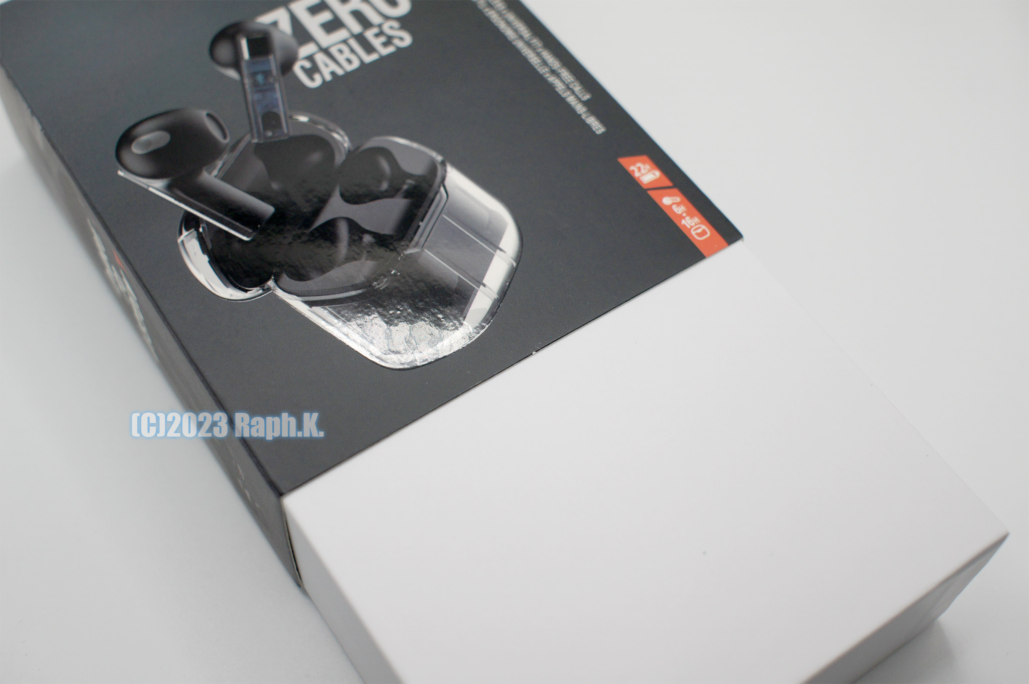 아마 중국에서 생산돼서 전 세계로 우편배송 하다 보면 박스가 찌그러지는 걸 고려해서 이런 포장을 한 것 같기도 합니다만, 그래서인지 이 제품 역시 받았을 때 이미 박스 일부 모서리가 많이 손상된 상태이긴 했습니다. 아마 포장으로 제품을 보호한다는 측면에 있어서는 만점에 가까운 점수를 얻을 수 있는 구성입니다. 저 넓은 공간에 TWS 본체에 짧은 케이블 하나, 플라스틱 성형부 밑 부분에 영어로 된 설명서 한 장이 구성품의 전부입니다.