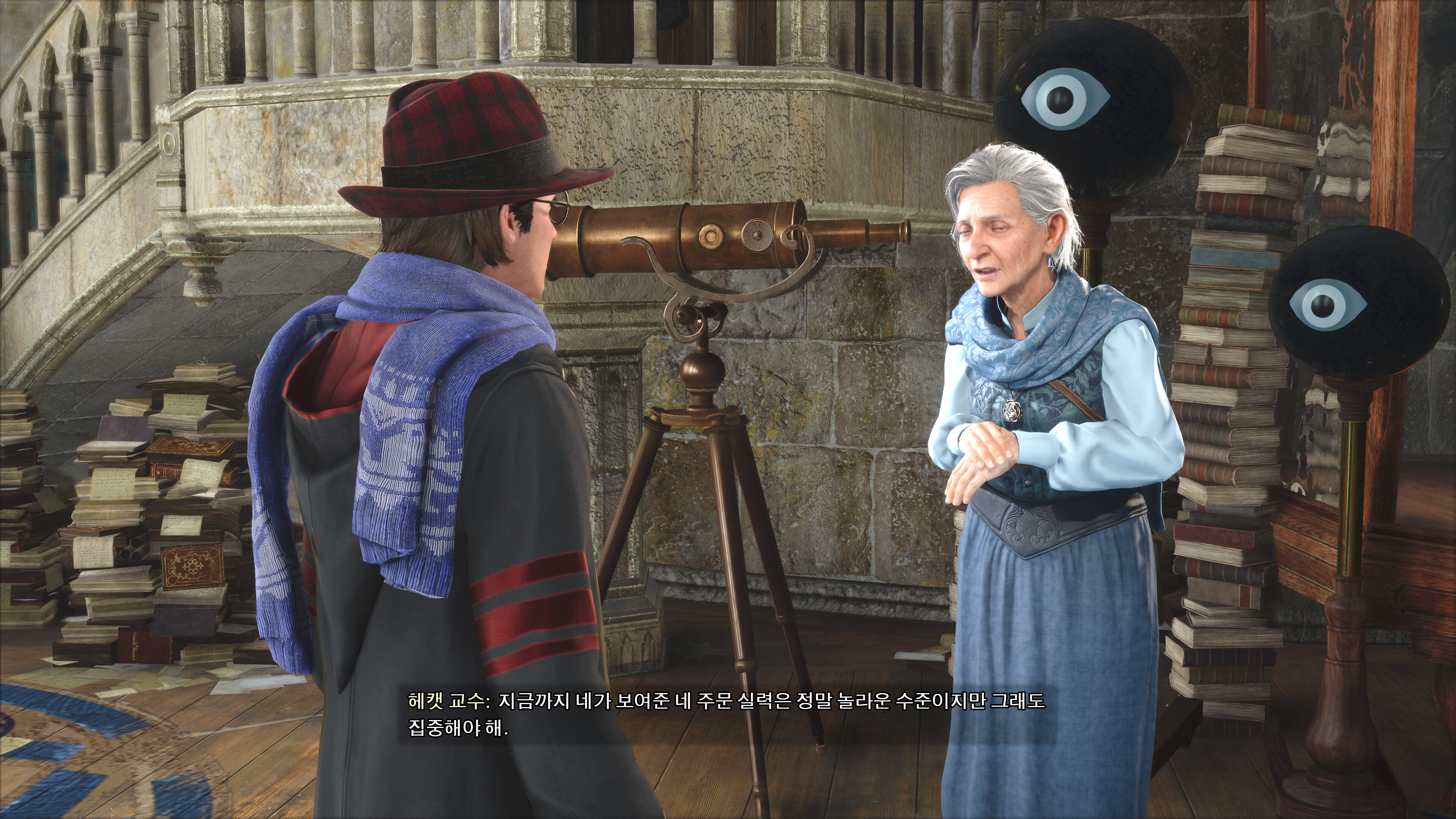 물론 DLC로 추가 구매로 풀릴 것이라는 해리 포터 세계관의 빗자루 타고 날개 달린 공 쫒는 그 게임을 할 수 있는 공간이 이미 마련되어 있다는 점 (위 스크린 숏에 나오는 그곳) 이 기대도 되는 부분이긴 합니다만 - 아마 게임 엔진상 출시까지 구현을 못한 것이라는 상상도 됩니다. 현재 AMD Ryzen 5600에 32GB 메모리에 RTX2070으로 4K 해상도 DLSS performance 조건으로도 수업시간등에 여러 NPC 가 동시에 많이 움직이는 장면이 나오면 거의 프레임이 10 이하로 떨어지는 끔찍한 현상들이 많이 나오기 때문에 퀴디치 게임이 구현이 못된 것도 있다고 봅니다. 특히 RTX이지만 RT를 끄고 게임을 해야 그나마 프레임 유지가 되는건 함정이기도 합니다. (모 트위터 발로는 4K 해상도에서 RT 를 켜려면 VRAM 크기가 16GB여야 한다는 충격적인 소식이 돌기도 했습니다)