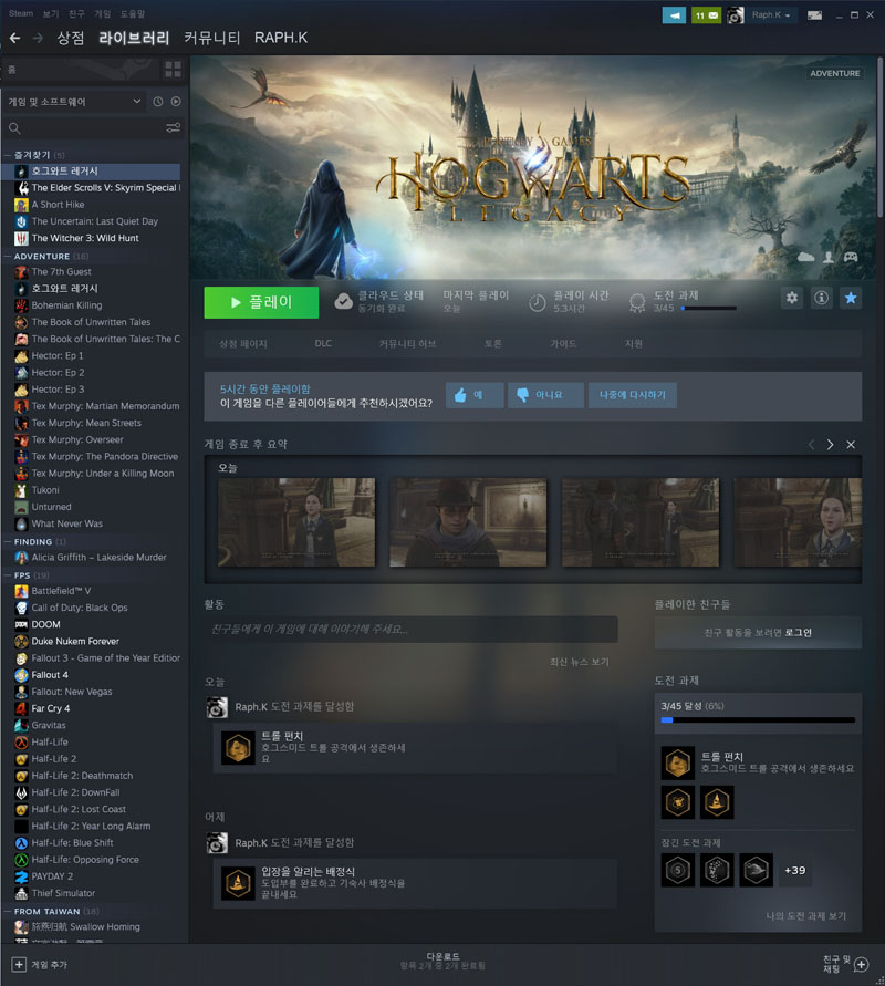 포트키 게임즈, 그리고 호그와트 레거시. 얼마 전에 PC 버전이 풀리면서 Steam에서 6.8만 원이라는 나름 거금이지만, 게임의 분량을 생각하면 사이버펑크 2077 보다 한 10배는 혜자선생님 같은 느낌을 주는 명작이 아닌가 합니다. PC 버전이 늦게 풀렸기 때문에 한량처럼 살고 싶다는 모 스트리머의 답답한 게임 플레이에 감동을 받아 저 역시 답답하게 게임할 건지라 며칠 고민하다 결국 구매를 했습니다.