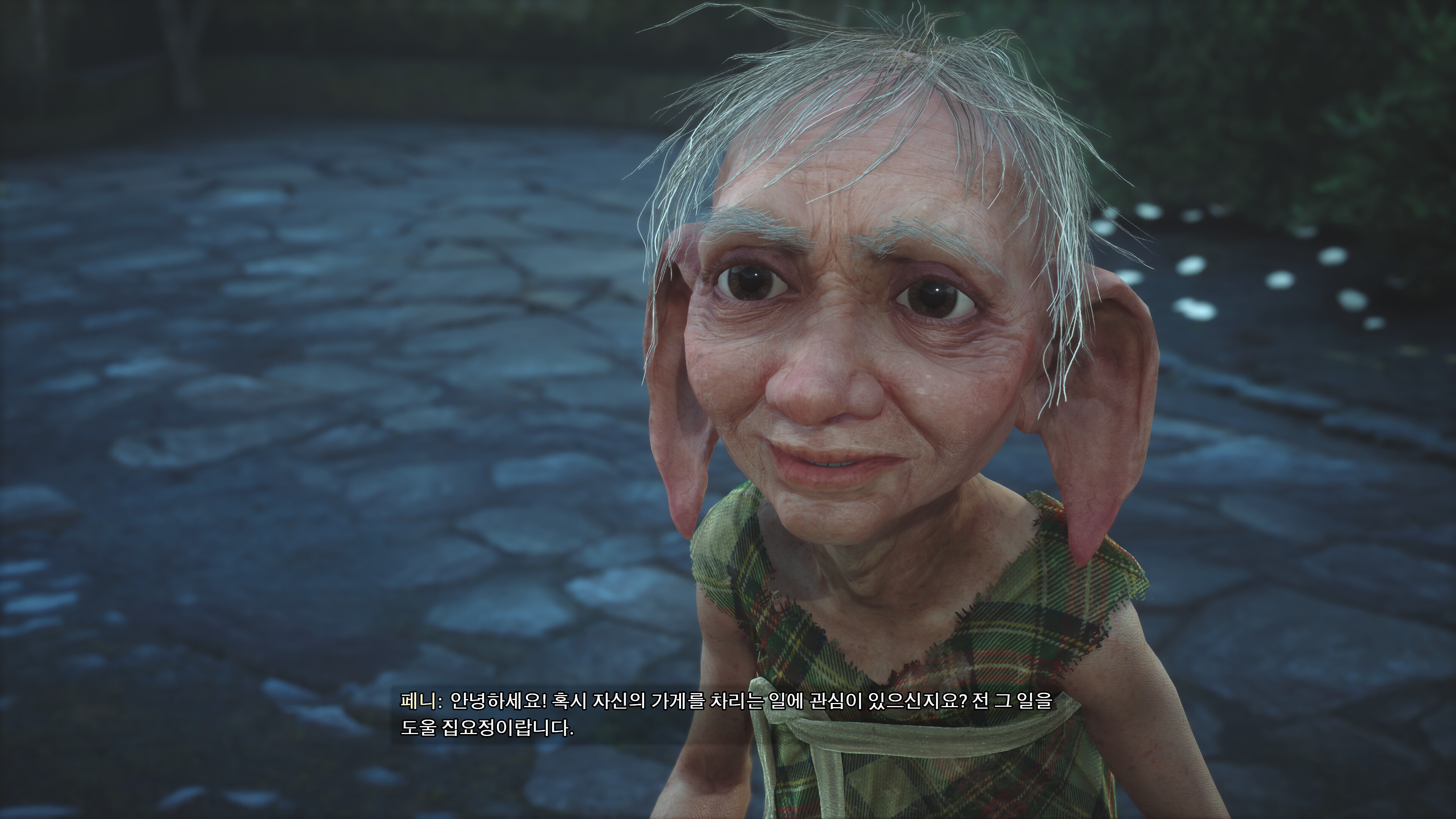 여기가 가야 할 곳입니다. 여길 가면 "페니"라는 집요정이 있고, 그녀(?)에게 말을 걸면 퀘스트가 시작되는데, 바로 말 거는 곳에서 시작이 아니라 내놓은 가게주인을 만나 봐야 한다는 것이 이야기의 시작이 됩니다. 아마 퀘스트를 바로 시작하려는 분들은 저처럼 호그시미드 북쪽을 갈 것이 아니라, 남 쫌에서 바로 가시면 시작되지 않을까 합니다. 혹시 모르겠으나, 낮시간엔 "페니"가 나타나지 않고 밤시간대에만 나오는 거 같긴 했습니다.