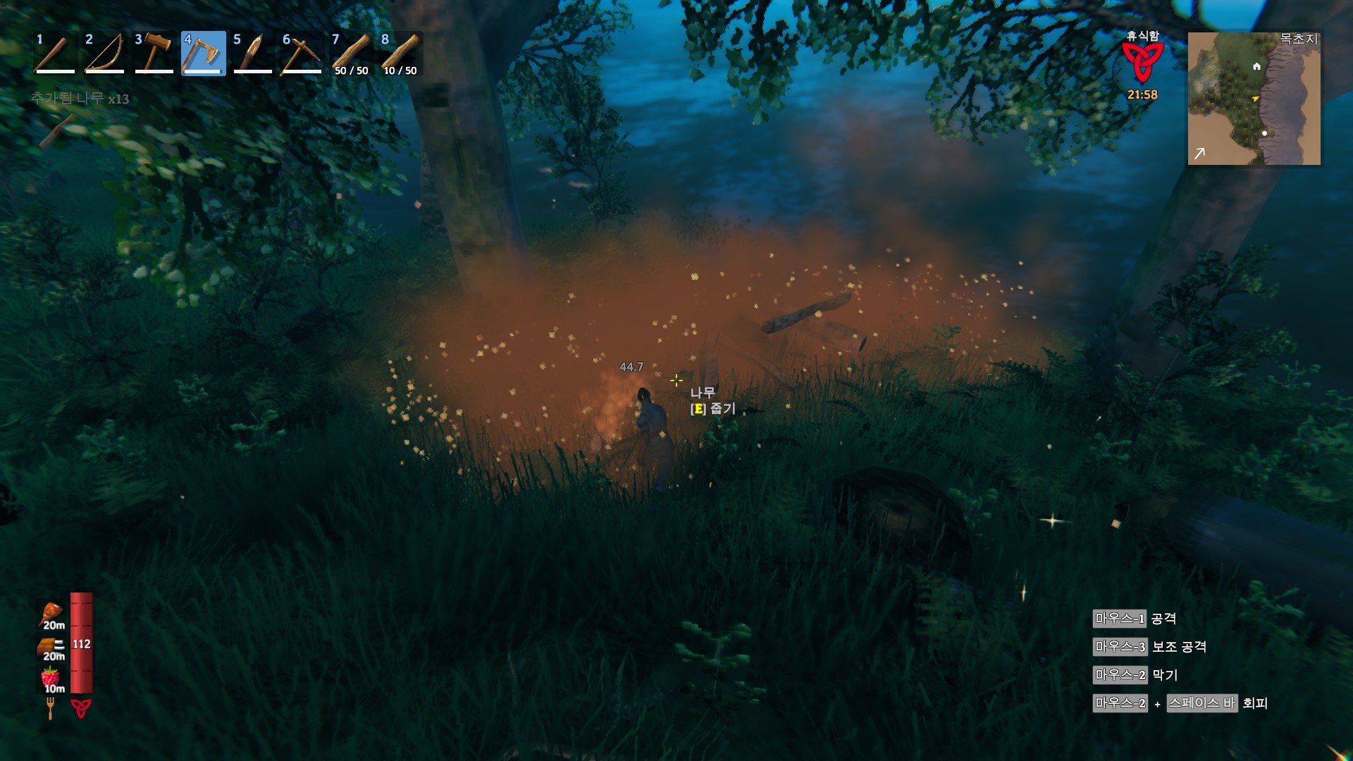 또한 외진 곳에 새로운 정착지를 만들기 위해 나무 노가다를 해야 하는 것은 부족한 인벤토리에 압박으로 정말 긴 시간 노가다를 해야 함은 물론, 짊어지고 다닐 수 있는 용량을 늘려 주는 무슨 벨트를 판다는 상인을 아직도 못 만난 입장에서 정말 인벤토리 제한이 좀 커졌으면 하는 바람은 간절합니다. 아마 이 게임에서 가장 힘든 부분이 인벤토리 압박일 겁니다.