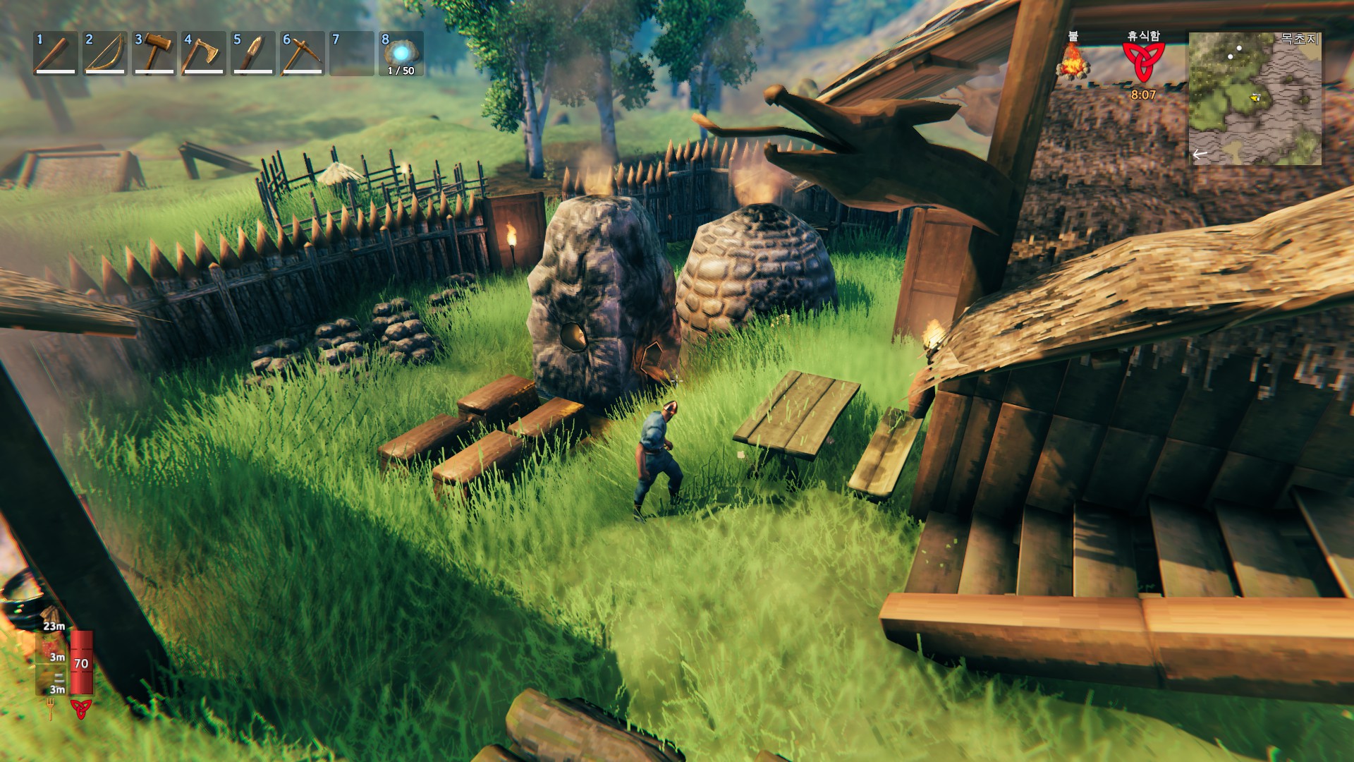 게임상 날짜를 벌써 69일인가 를 넘기고 있는데 두 번째 보스인 엘더가 어디에 있는지만 알고, 있는 곳 까지도 못하고 있는 상태인걸 보면 얼마나 더 걸릴지 모르겠지만 과연 게임상 "오딘이 준 임무"를 며칠 만에 깰 수 있을지 모르겠습니다. 청동 만들려면 주석 구해야 하고, 구리는 2배로 구해야 하고, 이걸 또 제련하려면 하루 종일 집 앞에서 녹이고 태우고 붓고 정리하고... 정말 자비가 없는 노가다를 게임에서도 해야 하는건가? 라는 회유감을 느끼게 하긴 합니다만, 그만큼 뭔가 다음 단계로 넘어가게 되는 시점이 올때 느끼는 희열은 또 다른 이 게임의 재미가 아닐까 합니다.